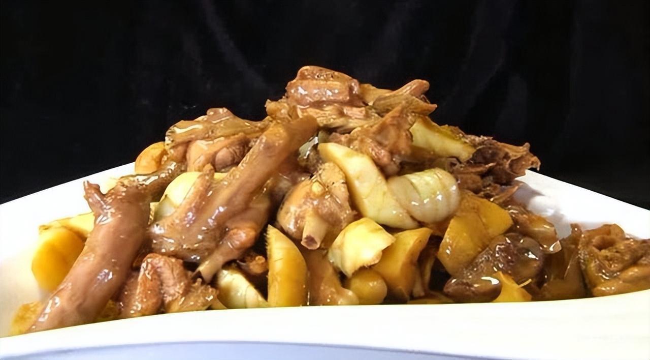 做法:鸭肉洗净剁快备用、冬粉薯切厚片备用;将鸭肉煎至两面金黄捞起,另起油锅加老姜爆香,然后加入鸭块加水,加香料大火焖十分钟后转文火再焖三十分钟,后加冬粉薯焖十分钟,最后调味料文火收汁即可。