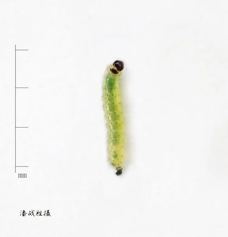 幼虫(腹部末节呈正方形排列的4个黑斑)