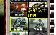 裂解武士:造价-1100.武器:组键器。裂解武士的武器是一具精密的,从原子层面上瓦解物质结构的断键器,对敌军建筑使用,破坏他们建筑材料的结构,让它们变得更加脆弱。