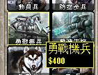 勇战机兵:造价-400.武器:超重机枪。焚风反抗军初级步兵。这些部队穿着机械外骨骼,这让他们可以承受很多恶劣状况,同时速度又不会降低。手里的重机枪反地面还能防空。价格贵是有道理的