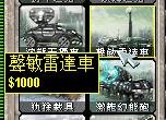 声敏雷达车:造价-1000.轻型装甲。辅助型单位。武器:声波测距雷达。可以有效地发现被比如纵火狂,疯狂伊文这样的单位部署的炸弹并且可以为使用金箭火箭弹的单位增幅提升效率,侦测隐性单位。