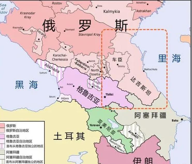 车臣地处北高加索地区,我们对比图1和图2就知道这个地区就是兵家必争之地。红色所圈的地方就是车臣共和国。