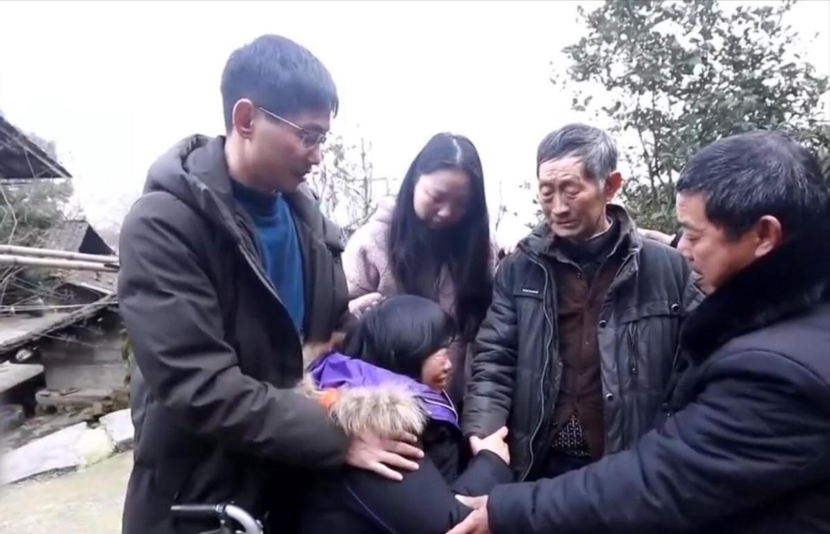 当乘载黄翠云一家的车子来到黄金贵家门前时,黄金贵与儿子已等待多时。他一直盯着车子里的情况,双手无措地摆着,看着儿子和女婿将女儿抱到轮椅上。