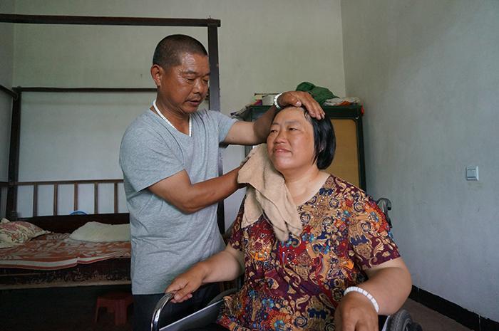 然而进到屋里,眼前的景象却让记者怔住了。只见一个中年男子,正为躺在床上的女人做按摩,而床的旁边还放着一把轮椅。这到底是怎么一回事呢?