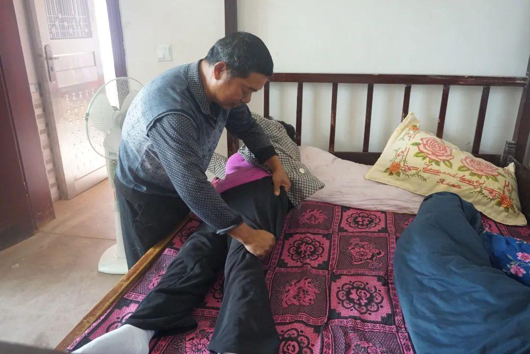 每天,许志礼都要为妻子做全身按摩,洗脸擦身,端屎端尿,将130斤重的黄翠云抱来抱去,就这样一坚持就是26年。