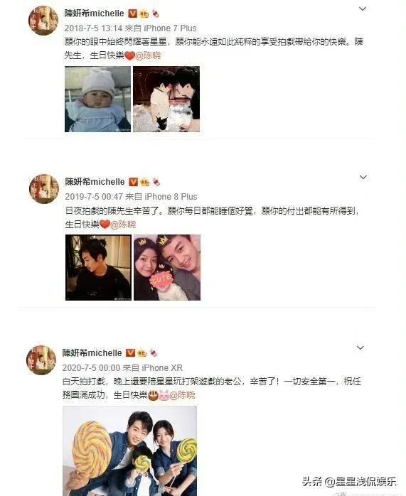 事实上陈妍希已经连续多年为陈晓庆生, 每次都是深情祝福再配上一家三口的合照,画面很是温馨。
