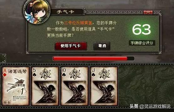 哈哈哈哈哈哈小杀你告诉我我这手牌是一般般?你会不会玩黄盖!妈耶这手牌真的算的上是黄盖的天胡手牌了吧,开局AK三个杀,稳定能秒一个了都,隔壁的马超和马岱都馋哭了!这样的手牌评分才63分,这个机制我也不知道怎么判定的,咱也不知道咱也不敢问啊!