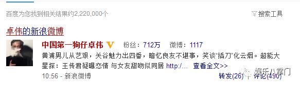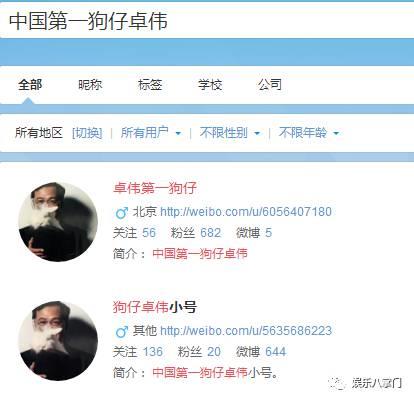 而搜卓伟的微博全名:中国第一狗仔卓伟,出现的只有高仿号