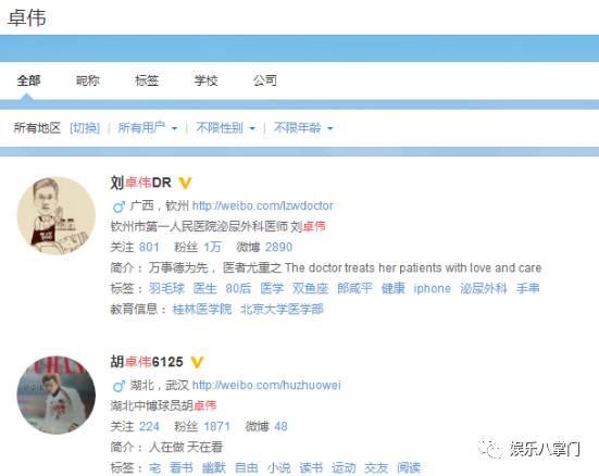 于是赶紧戳开微博搜索卓伟,新浪提供的是泌尿科医生和球员的微博……噗~