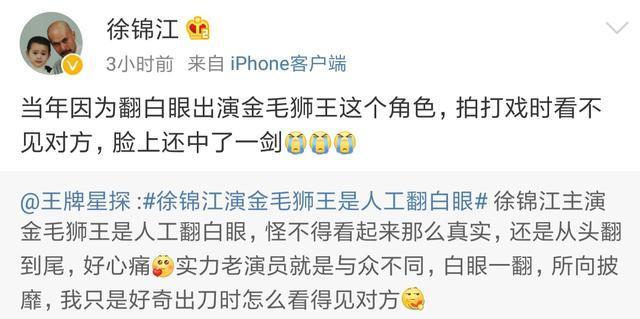 今天(3月3日),#徐锦江金毛狮王是人工翻白眼#上热搜,金毛狮王的饰演者徐锦江也随后转发了此文。原来当年真的是人工翻白眼,网友纷纷评论,看看吧。