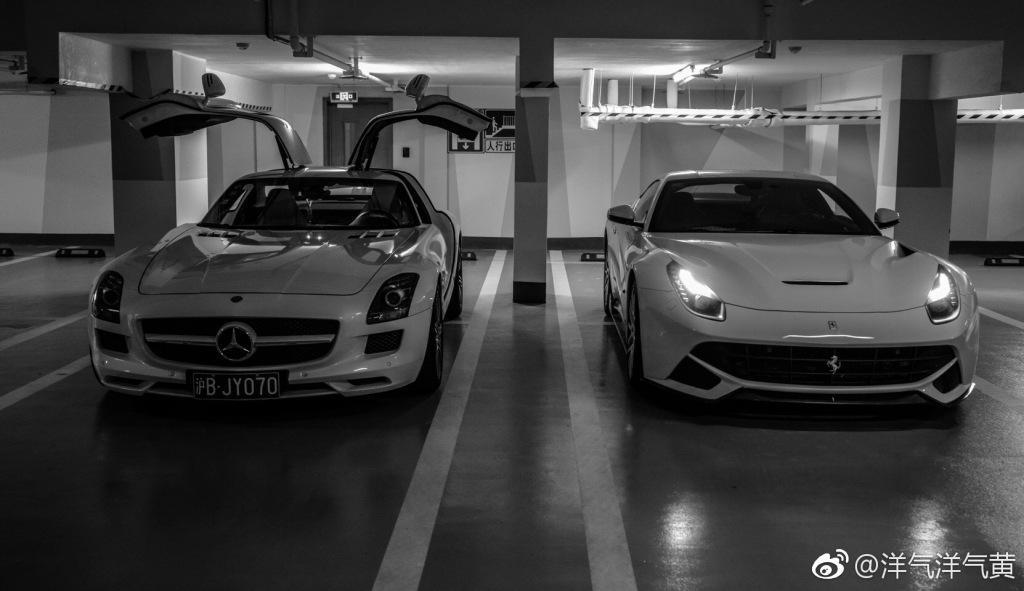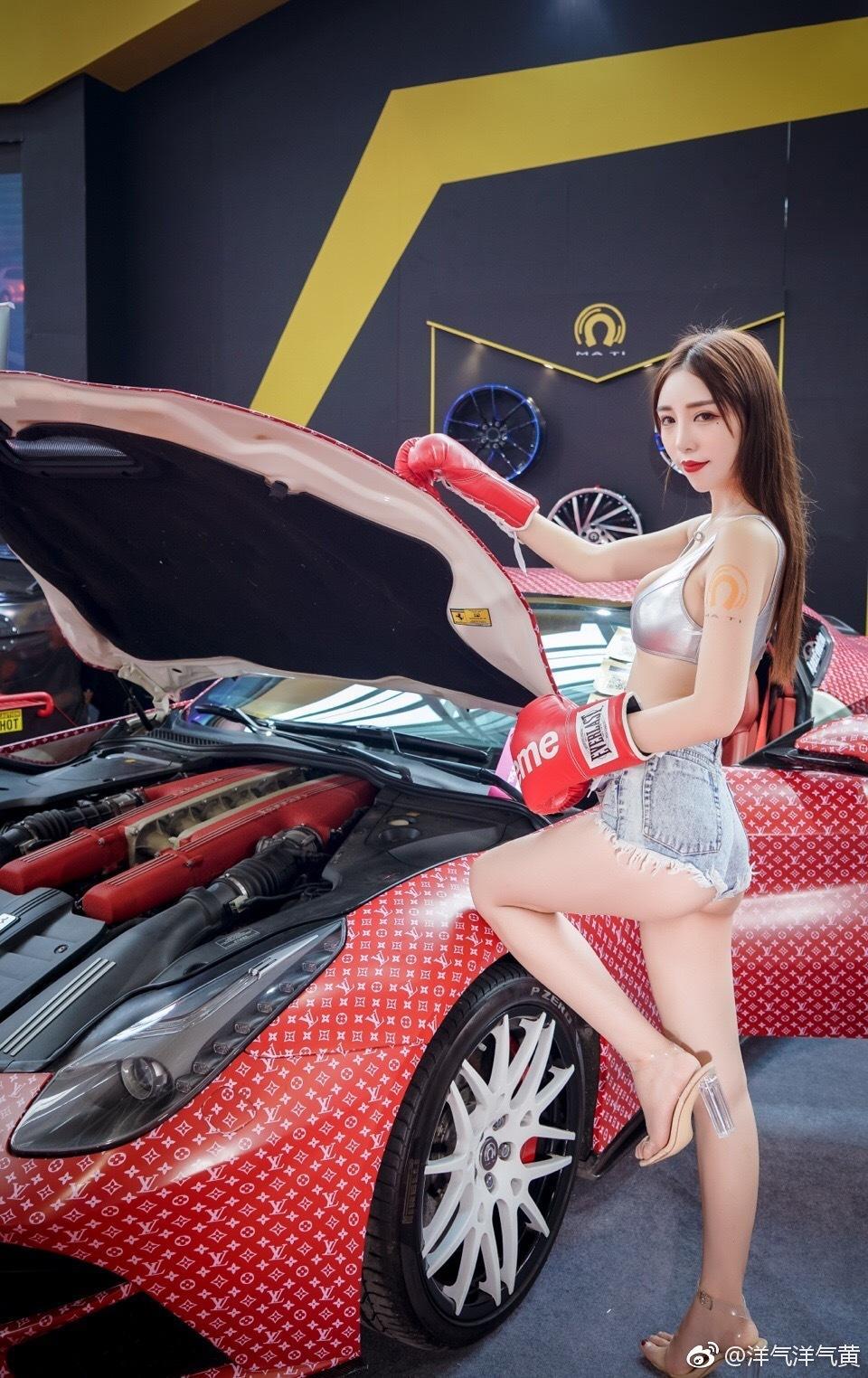 而平时微博的画风是这样子的,香车配美女!