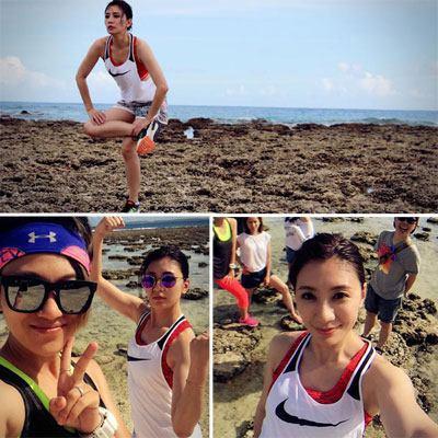 和朋友一起出行也是满满的活力,喜欢运动和健身的贾静雯甚至还有小肌肉可以向朋友秀一秀。零妆容的脸也是经得起无P图摄像头的。