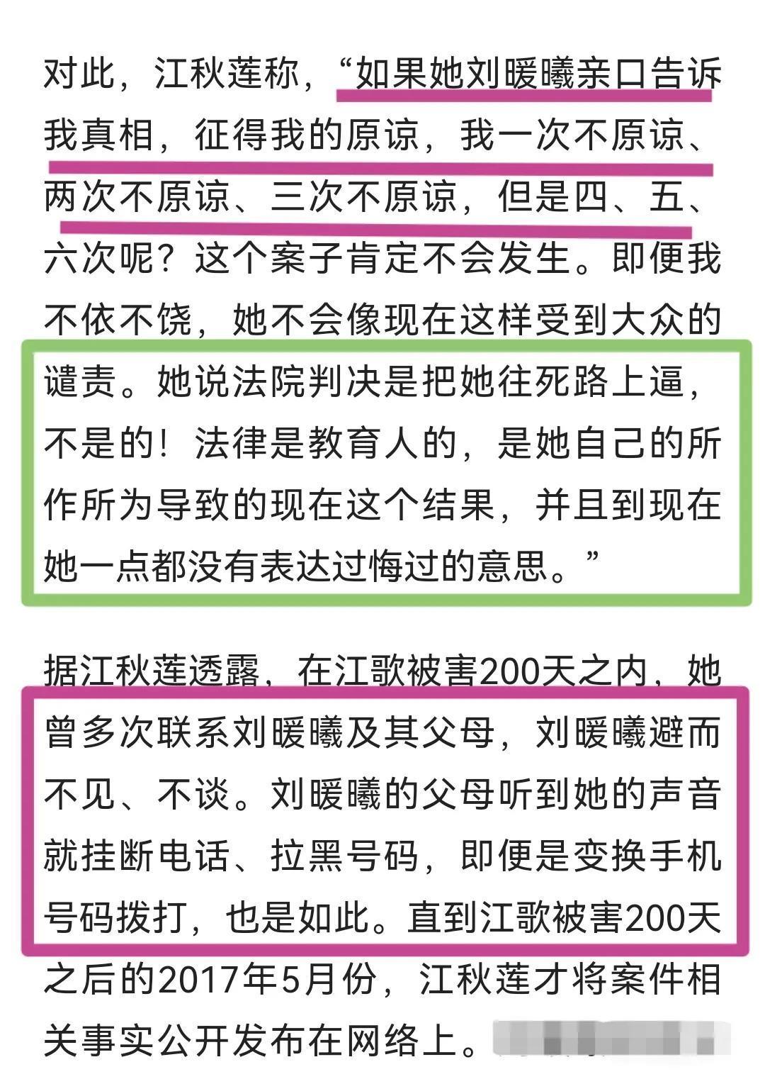 刘鑫忘记了江歌的母亲,正在经历这锥心之痛。即使对方不原谅自己,她也应该做好自己的本分,应该感同身受。