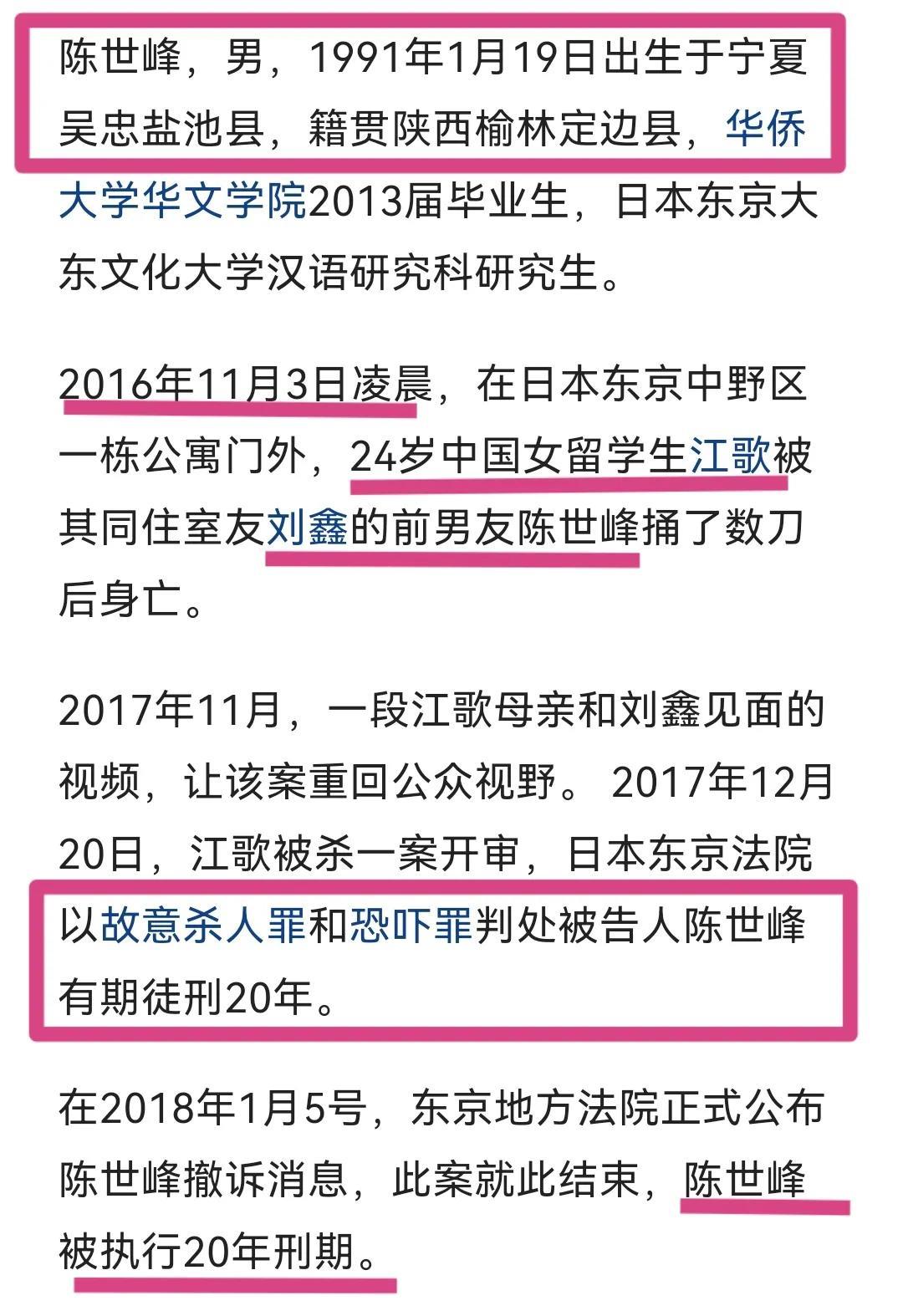 2016年11月3日,陈世峰来到日本东京某公寓门口,找前女友刘鑫求复合。江歌出面和其交涉,结果他情绪失控。