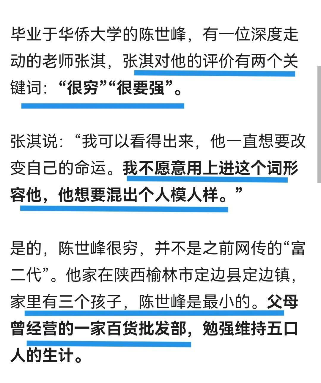不知陈世峰的性格,是不是随他父亲?听闻他父亲的脾气不太好,属于一点就着的那种,有不顺心的事就会发火。