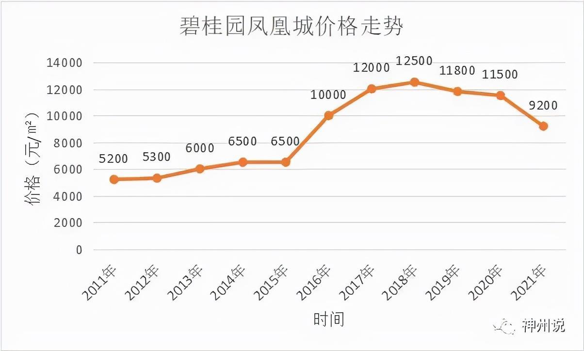 好景不长,2019年,碧桂园凤凰城房价跌回至11500元/平……