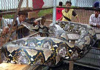 这条大蛇是在印尼西部苏门答腊岛的一个原始森林中被发现的,发现它是当时有19米的长度,后来尾部被人切掉了4米,所以变成了14.85米。当地人捕获后卖给了公园,公园的管理人将这条大蛇取名为“桂花”。虽然取名听起来很温柔,但据说“桂花”一旦张口就十分的吓人,可以很轻松的吞下整整一个人。当时要制服这条巨蟒,至少需要8-10个壮年男子参与。此前,吉尼斯世界记录中所记载和公认的世界最大的蛇是一条身上花纹呈网状的大蟒,身长10米,已于1912年射杀。