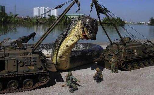 看到上面这张图片里的巨蛇,简直逆天,原来世界上最大的蛇这么大。不过如果你抱着猎奇的心态看一下也就算了,如果你真的觉得世界最大的蛇有这么大,那可真的是文盲了。关于图中的巨蛇的图片,原出自阿拉伯的一个论坛上,特别是图片中的军人有点假,有点像奥特曼打怪兽的感觉。如果真的存在这么大的蛇,那这蛇吃人简直就是易如反掌了,再说,蛇是处于食物链顶端的生物,如果这么大的话,那他的天敌是谁?总之,红海巨蛇它是一个骗局!