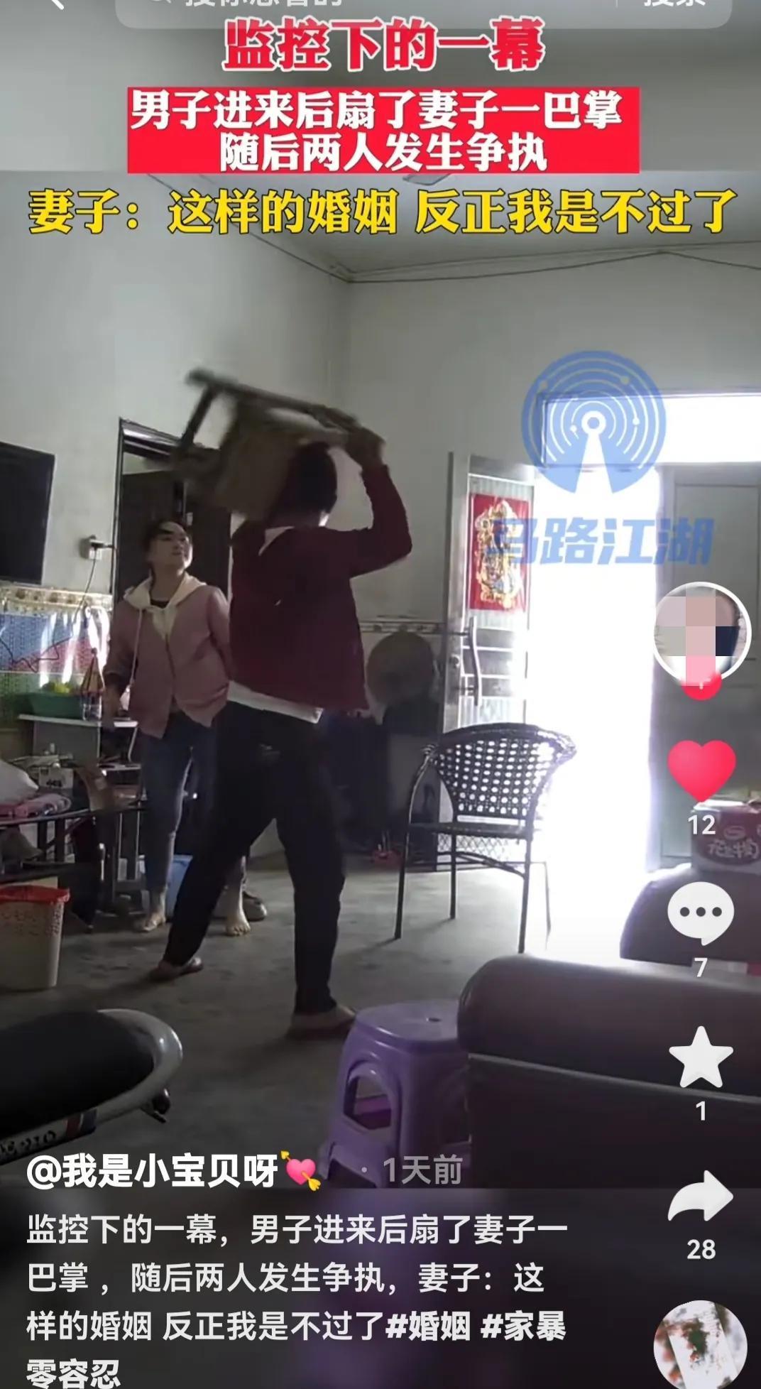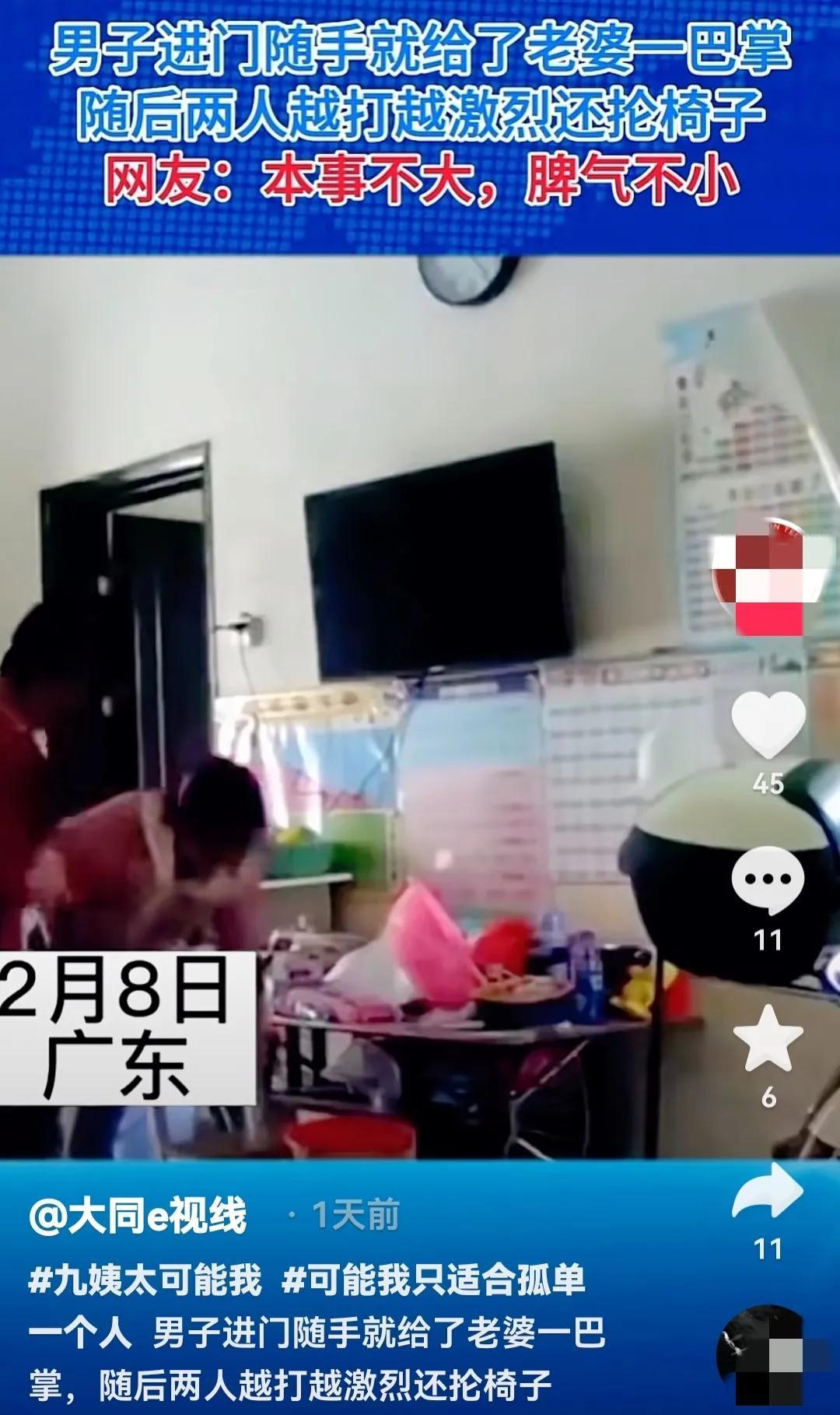 2023年2月8日,在广东的一户农家中发生了一件骇人听闻的家暴事件。根据家中视频记录显示,男子进门之后发现妻子翘着二郎腿躺在椅子上看手机,后无缘无故的打了妻子一巴掌