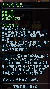 先看恍惚套:启明星的指引:5%的技能攻击力,每提升1点强化或增幅等级,额外增加1%(最高12);氤氲之息:5%的最终伤害,每提升1点强化或增幅等级,额外增加1%(最高12);清泉流向:5%的物理、魔法、独立攻击力,每提升1点强化或增幅等级,额外增加1%(最高12);套装:20%的黄字,20%的暴伤,以及若干的速度,单看恍惚套,提升涵盖了所有的方面,全方位的提升是最大的。