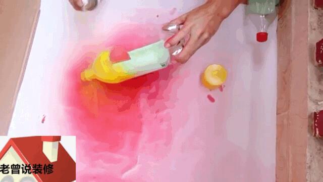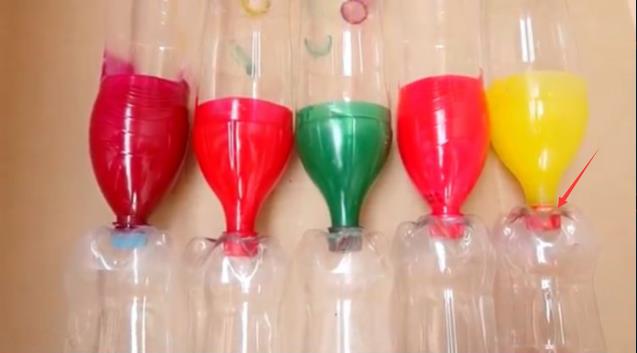 通常花盆里面都要装上泥土,泥土在饮料瓶内或许是小哥认为不好看,所以他做到这里时又将连接好的饮料瓶拆开,在瓶口处也就是以后用来装泥土的地方,喷上了各种五颜六色的的水性漆。