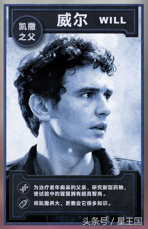 从剧情上来看,威尔·罗曼算是凯撒的养父。在凯撒的母亲去世后,威尔·罗曼收养了凯撒。虽然继承了母亲的高智商,但骨子里仍然还存在着些许的野性。