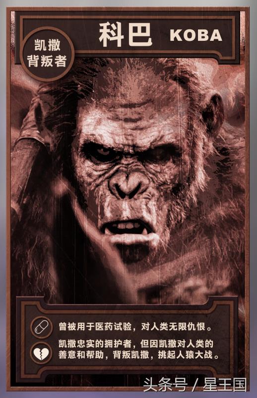 科巴,是以恶的形式存在,因被当做试验品,仇恨人类。凯撒也有相似经历,只不过威尔·罗曼给这种恨做了减分。