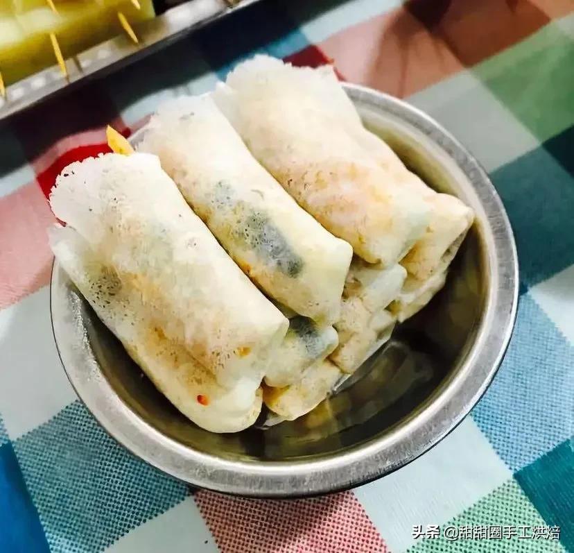 ①春卷皮:面粉500g、清水500g、精盐5g;