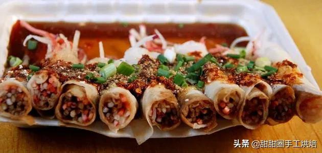 (2)春卷包馅卷制后,也可以直接淋调味汁成淋味春卷。