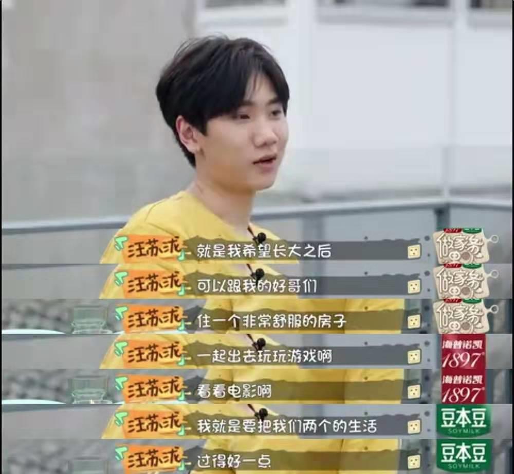 汪苏泷坦言:我很小的时候就有一个愿望,长大了自己赚钱,给自己更好的生活,可以跟最好的哥们一起打打游戏,看看电影。所以你(尤长靖)说到有些东西要不要买,我觉得都要买,因为我想让我们有更好的生活。