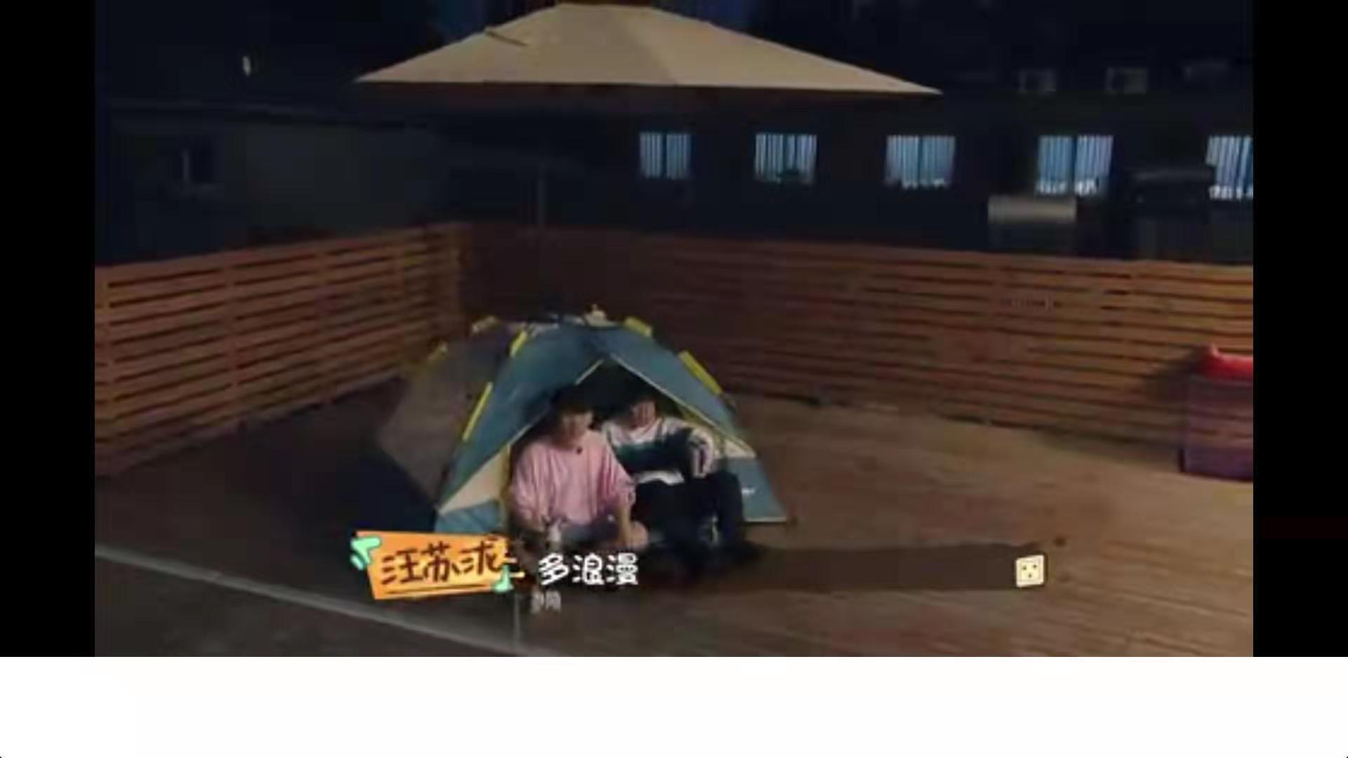 然而弟弟的阻拦没有阻碍得了汪苏泷的消费欲望。帐篷到了第一天晚上,汪苏泷就各种引诱尤长靖和自己坐在帐篷里看星星。帐篷里又闷又热,俩人满头大汗,还是强忍着在屋顶坐了40多分钟。