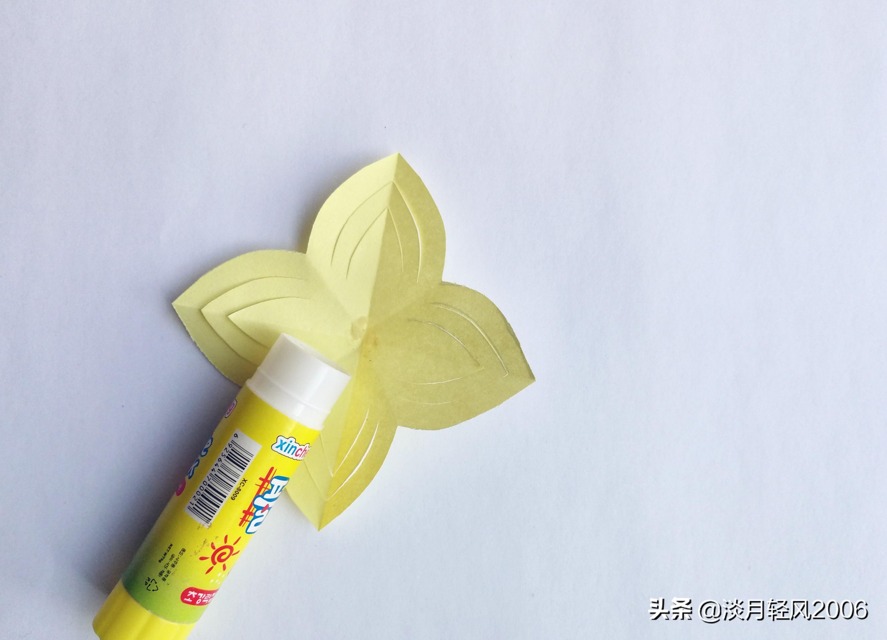 这个小花的剪法很好学,折的方法和画的方法都特别简单,只是多了一个把花瓣折到里面粘个花心的步骤。都不难,孩子一学就会