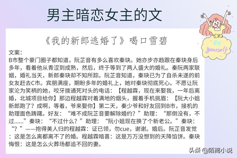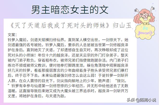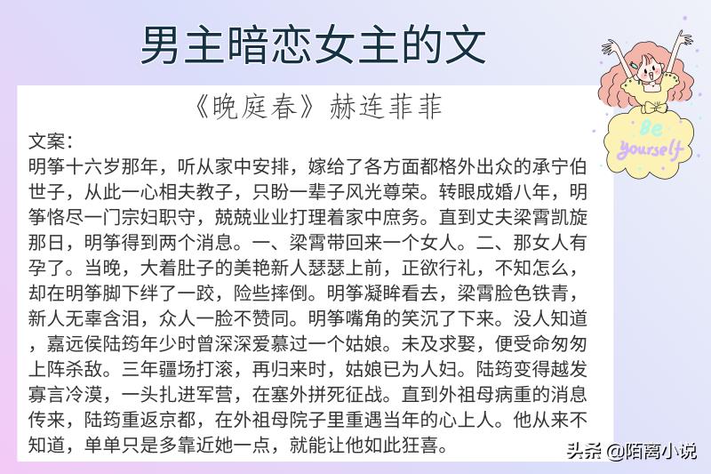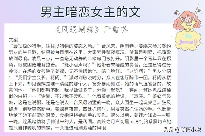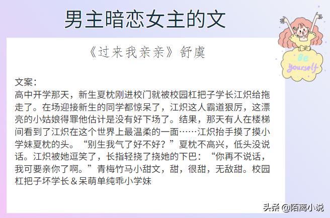 #小说推荐#哈喽,大家好,这里是陌离小说!今天给大家带来的是6本男主暗恋女主的文,强推《眷》,小心翼翼的真诚坚毅深情又可爱,禹毅的喜欢是动词,是心动+行动,真的太让人心动了啊,女主也很可,中文系的女主很难不让人心动,傲气的自信的心细敏感地将自己囿于一隅的!