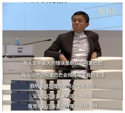 3.悔创阿里——杰克马,阿里巴巴在BAT阵营中可以说是在国际社会上最让人注视的公司了,电子商务与移动支付全球布局,国内也占据了绝对的第一,咱们的小马哥在国际上也是非常的引人注意,经常到各国演讲甚至被领导人接见,在曾经一次国外的访谈节目中,被主持人问到做过最后悔的事情是什么的时候,咱们马爸爸毫不犹豫的说出了:“我最后悔的事情就是创建了阿里巴巴(然后主持人一脸懵逼的看着马爸爸继续吹牛逼)”