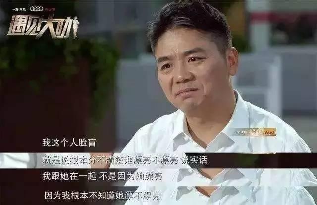 2.不知妻美——刘强东;刘强东,京东集团创始人,一直以来行事高调,奶茶妹妹章泽天曾经一夜爆红后,嫁给东哥,也是曾经在节目中,当主持人问到奶茶妹妹时,东哥一脸正经的爆出金句:“我这个人是脸盲,就是说根本就分不清楚谁漂亮不漂亮,说实话。我跟她在一起不是因为她漂亮,因为我根本不知道她漂不漂亮,就是因为觉得她这个人就是心地非常善良和纯粹的一个人”