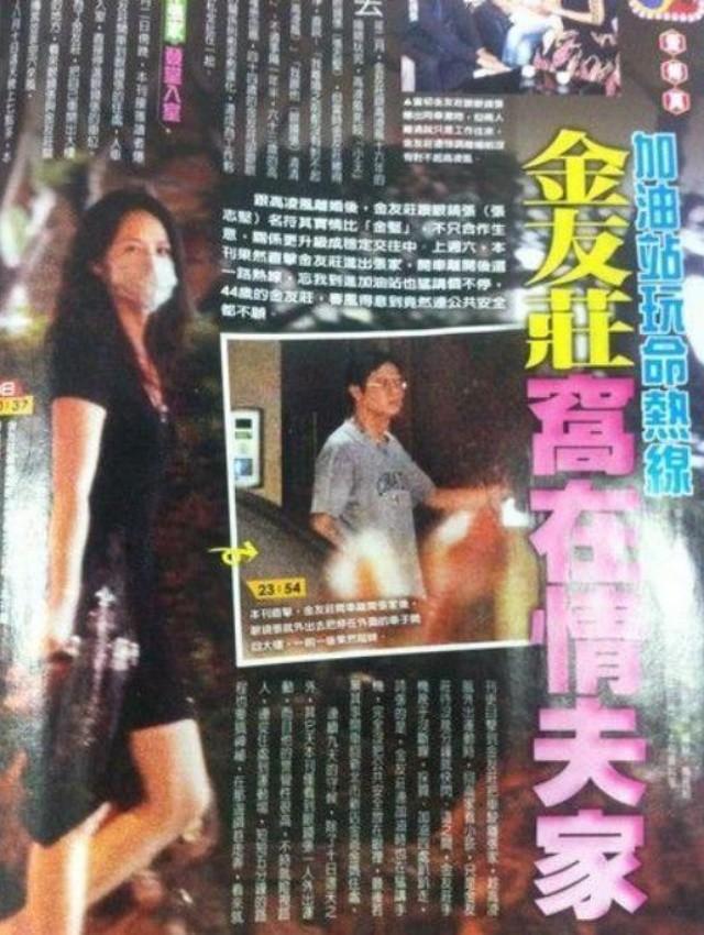 而人在台湾生活的金友庄也“不遑多让”,2011年初被拍到两次与从事保养品生意的商人张志坚深夜车内幽会,做出不可描述的举动,公然给老公“戴绿帽”,引发舆论的漩涡。但金友庄否认婚姻破裂是因绯闻危机,而是金钱投资观念不一以及性格的不合。