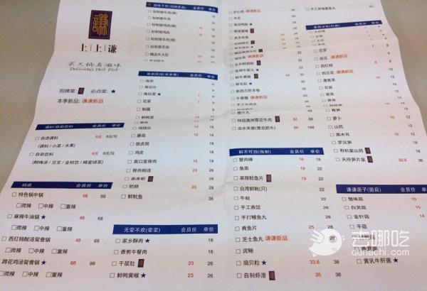 这是一张“上上谦”火锅店的价格表,从图中可以看出来跟平常火锅店价格差不多,看来薛之谦歌不但好听,也并没有坑我们啊!