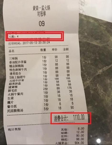 这是一位网友晒出来的账单,账单上可以看出来4个人一共消费量1110元。话说这四个人也没吃多少啊,在平常的火锅店也就三四百元左右,就连餐巾纸也要6元一份,反正小编是接受不了。不过这种事情也是周瑜打黄盖,一个愿打,一个愿挨。如果是我的话肯定去捧薛之谦的场。小伙伴你们怎么看?