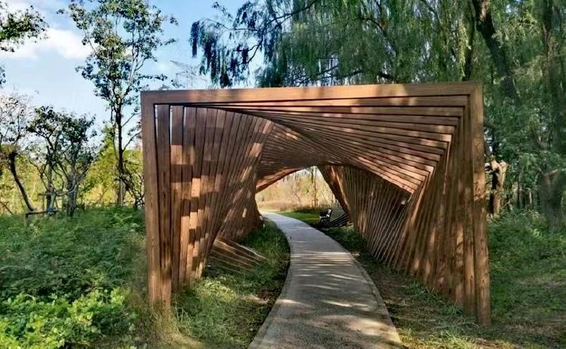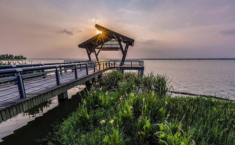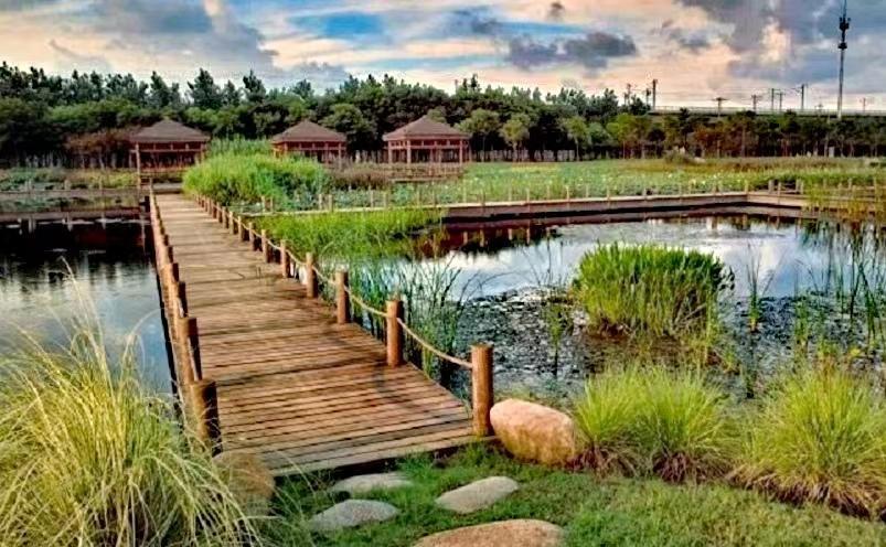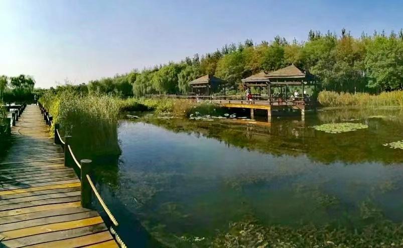 最惊艳的地方是湿地公园步道,绿树环绕,鸟语花香,既温馨且宁静,阳光下更显无比惬意。夕阳西下时,有一种“大漠孤烟直,长河落日圆”的意境。