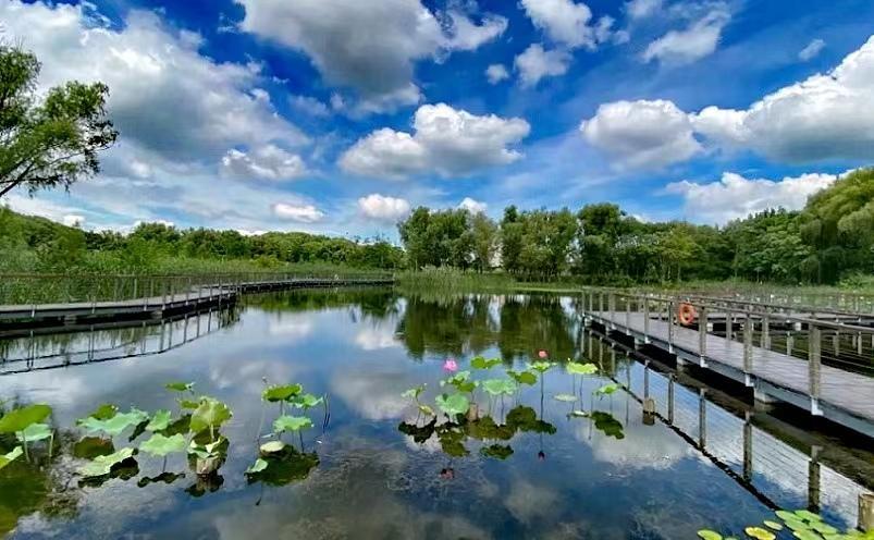 公园位于太湖流域吴淞江水系,河道纵横,湿地类型千姿百态,包括人工打造的小型湖泊湿地、富有江南神韵的河流湿地、充满野趣的沼泽湿地和由永久性水稻田、鱼塘构成的农耕湿地共四大类型。
