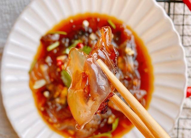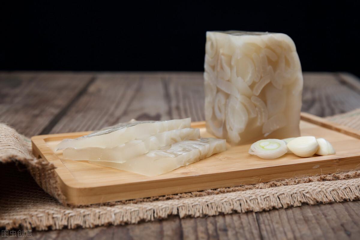 在南方,很少有人专门吃猪肉皮,甚至买肉的时候都剔下来了丢掉,但在东北,猪皮可是个好东西。过年的时候,家家户户都要做猪皮冻,做法是将精心挑选的肉皮,用刀刮干净,然后慢火熬制成冻,皮冻就像果冻一样,晶莹剔透,据说因为胶原蛋白含量高,还有美容作用,是东北人家中最喜欢的下酒菜。