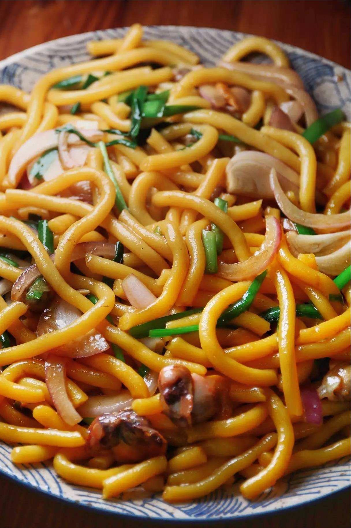 丹东的炒馇子口味最地道,有蛋炒、肉炒、蚬子肉炒、素炒等,无论怎么炒,都要放上一些葱花、韭菜等佐料一起炒制,炒好的口感软滑筋道,微酸可口,非常的鲜美。