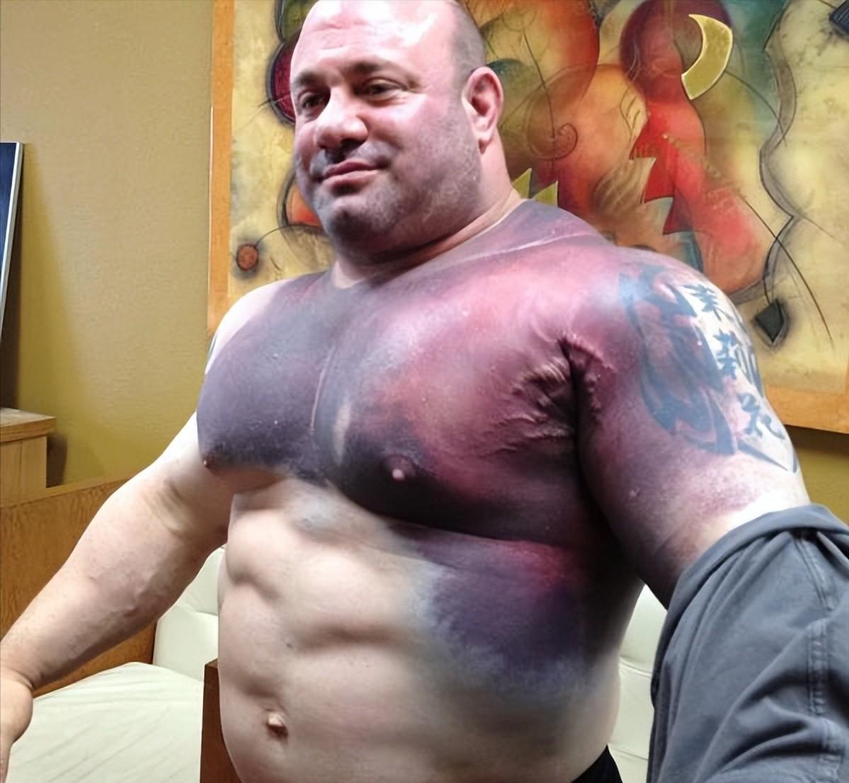 而图上的这位就是在举重途中导致胸部肌肉撕裂.......