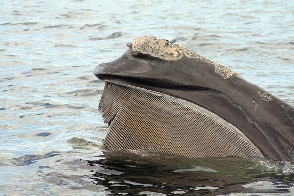 露脊鲸是大而强壮的须鲸,因没有背鳍而得名。口中两端各有约200~300个鲸须板,被短毛覆盖着,它们是露脊鲸进食的工具。