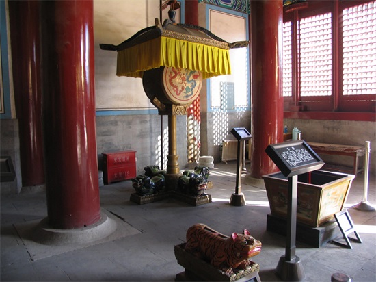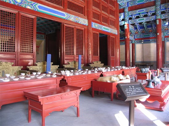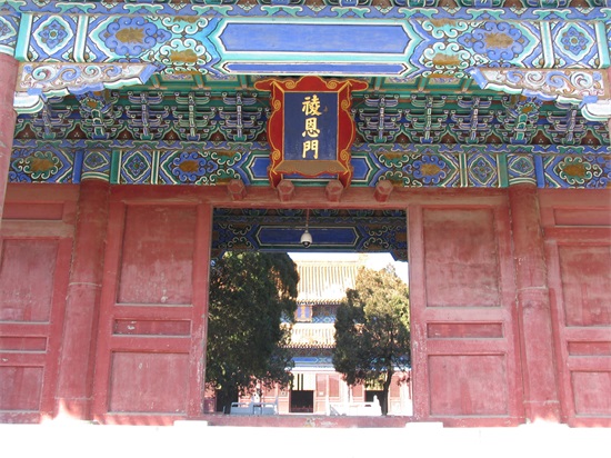 绕过了碑亭,穿过一座汉白玉石桥就来到了祾恩门,站在祾恩门内向北望,一座气势非凡的大殿矗立在庭院的中央,这就是祾恩殿,又名享殿,是举行祭祀活动的大殿,为明代皇家陵寝的主要建筑之一。嘉靖十七年(1538年),世宗朱厚熜亲易佳名,其中,“祾”字取“祭而受福”之意,“恩”字取“罔极之恩”之意。清朝诸皇陵改称“隆恩殿”。昭陵的祾恩殿始建于隆庆六年(1572年),竣工于万历元年(1673年)。清康熙三十四年(1695年)毁于雷火。清乾隆五十至五十二年(1785—1787年)缩小规模重建,后因风化剥蚀,年久失修,坍塌殆尽。现在这座祾恩殿是在旧有的殿基上,按照文化部文物保护科学研究所的设计,于1988~1989年重建的。祾恩殿内还举办有“明昭陵秋季复原陈列”,再现了明代秋祭时殿内供品丰洁、乐器齐备的隆重场面。