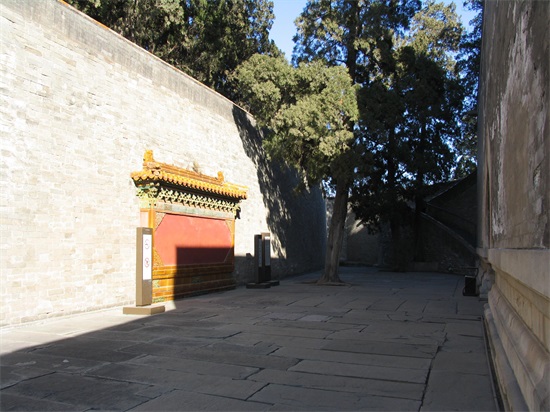 方城两侧的宝城墙内壁相接,形成了一个封闭的月牙形院落,人们俗称为“哑巴院”