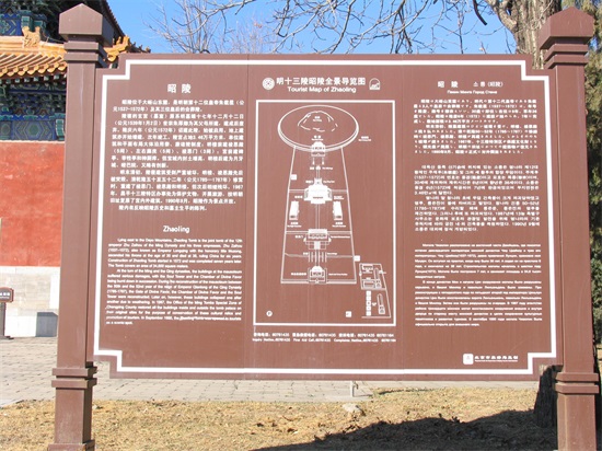明昭陵是明朝第十二位皇帝隆庆皇帝朱载垕及其皇后李氏(孝懿庄皇后)、陈氏(孝安皇后)和李氏(孝定皇后)的合葬陵寝,位于天寿山陵区大峪山的东麓。昭陵建筑规制有它独特的建筑风格,平面布局严谨、施工精细,依山势建有完整的排水系统。昭陵的最大特点是率先形成了完备的“哑巴院”制度。20世纪80年代,昭陵按原状被修缮,并于1990年正式对游人开放。