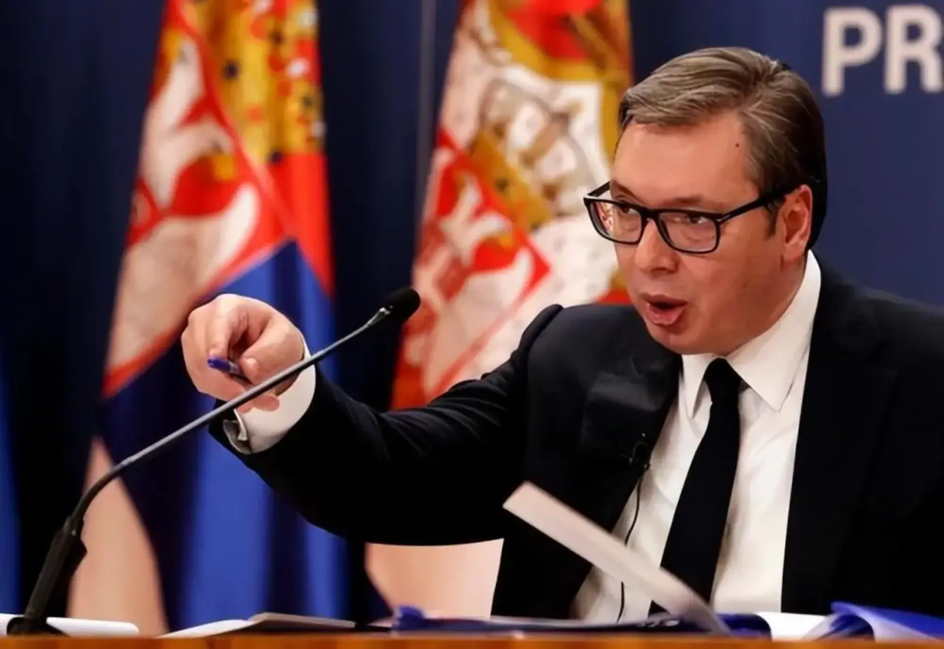 在这场活动中,塞尔维亚国歌缓缓响起,总统武契奇也发表演讲: