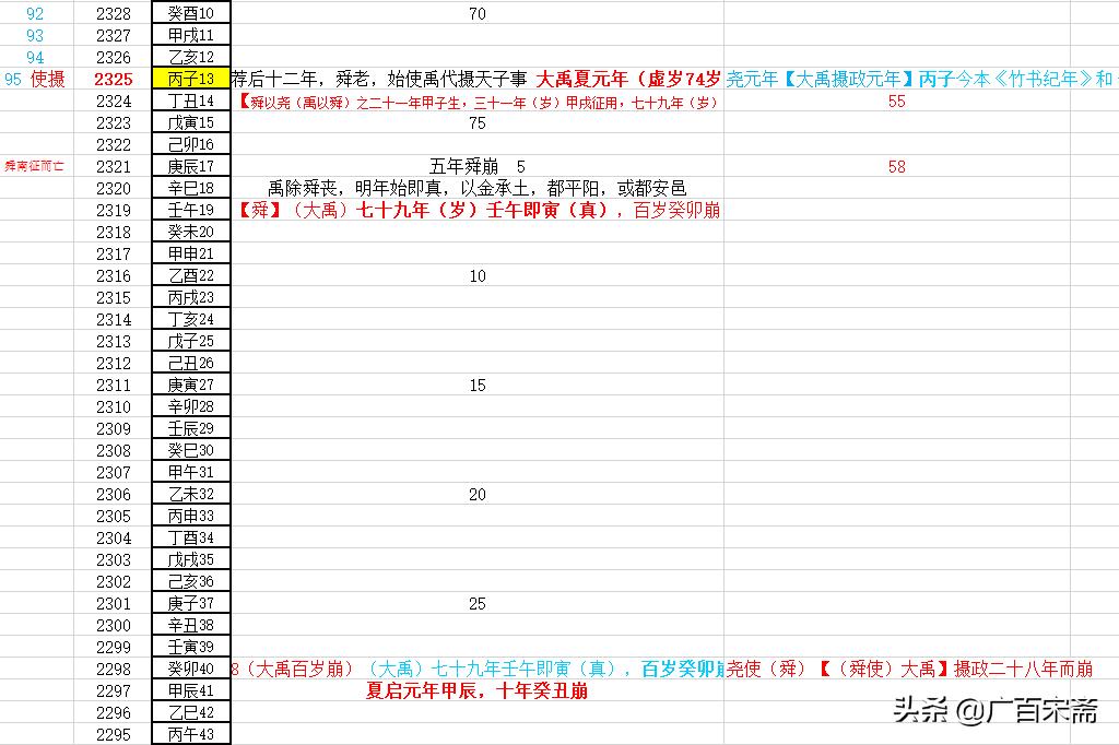 很显然,大禹代摄天子事,是且仅是公元前2325年,这就是夏朝元年。大禹正式登极,就在公元前2319年,这一年就是壬午年。大禹驾崩,100岁啊100岁,癸卯年就是公元前2298年。