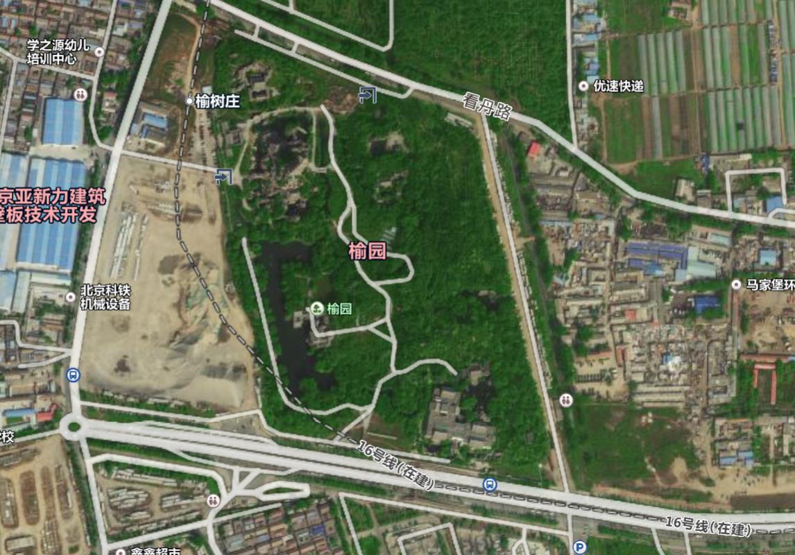 榆园,也叫“榆树庄公园”。位于北京丰台区西部,在看丹路和看丹南路之间,西边靠近西五环路和永定河。总规划面积768亩,水面40多亩。由清华大学建筑学院纪怀禄教授负责设计。